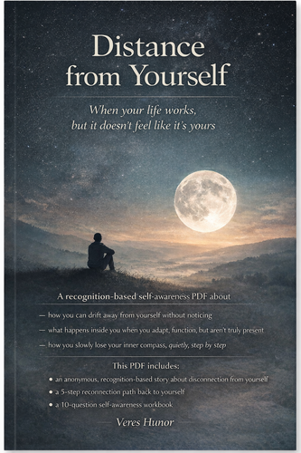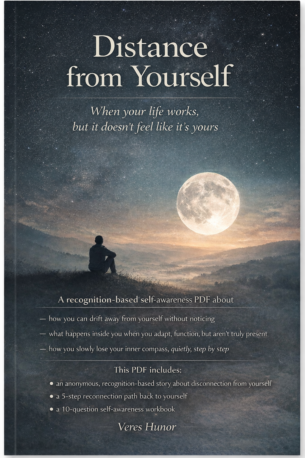 Distance from Yourself is a short, recognition-based self-awareness PDF about how it is possible to drift away from yourself without noticing — even when life seems to be working.